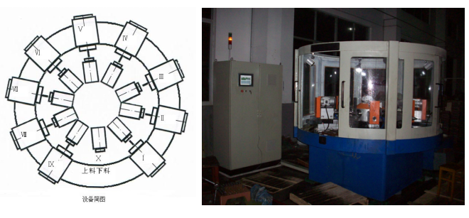 十工位噴油嘴數(shù)控鉆床主要用于噴油嘴針閥體偶件淬火前的粗加工工序,是通過一次裝夾,在一個(gè)幾何回轉(zhuǎn)中心上,通過工位的轉(zhuǎn)換,分別完成預(yù)鉆中心孔、中孔、平底、倒角、座面、大端面、壓力室等工序的加工、解決了傳統(tǒng)工藝在不同設(shè)備上分別加工中孔、座面、壓力室、大端面等因重復(fù)裝夾出現(xiàn)的質(zhì)量和合格率低的問題;通過該機(jī)床加工后,充分保證后續(xù)加工余量均勻而少,為淬火后精加工提高生產(chǎn)效率,提高產(chǎn)品質(zhì)量,為柴油機(jī)排放達(dá)到歐Ⅳ標(biāo)準(zhǔn)奠定了基礎(chǔ),該機(jī)床分度機(jī)構(gòu)采用高精度梳齒盤回轉(zhuǎn)工作臺(tái),總體結(jié)構(gòu)設(shè)計(jì)合理,加工精度高;添補(bǔ)了國(guó)內(nèi)外空白。