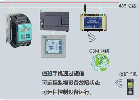 1) GRM200通過RS485和PLC連接后,即可實現(xiàn)手機(jī)短信讀寫PLC的寄存器。